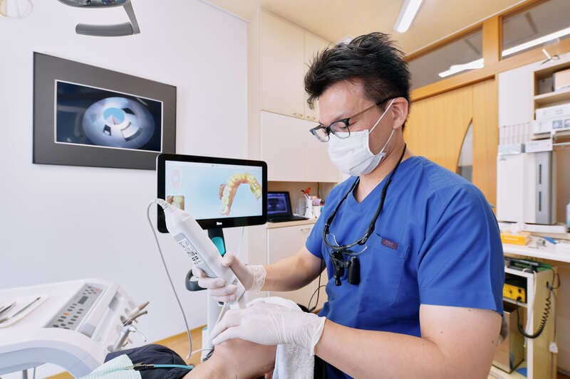 口腔内スキャナー(iTero)を使って、患者様の現状を把握いたします。